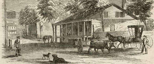 A view of the Old '76 House and Main Street in Tappan in mid-19th Century.